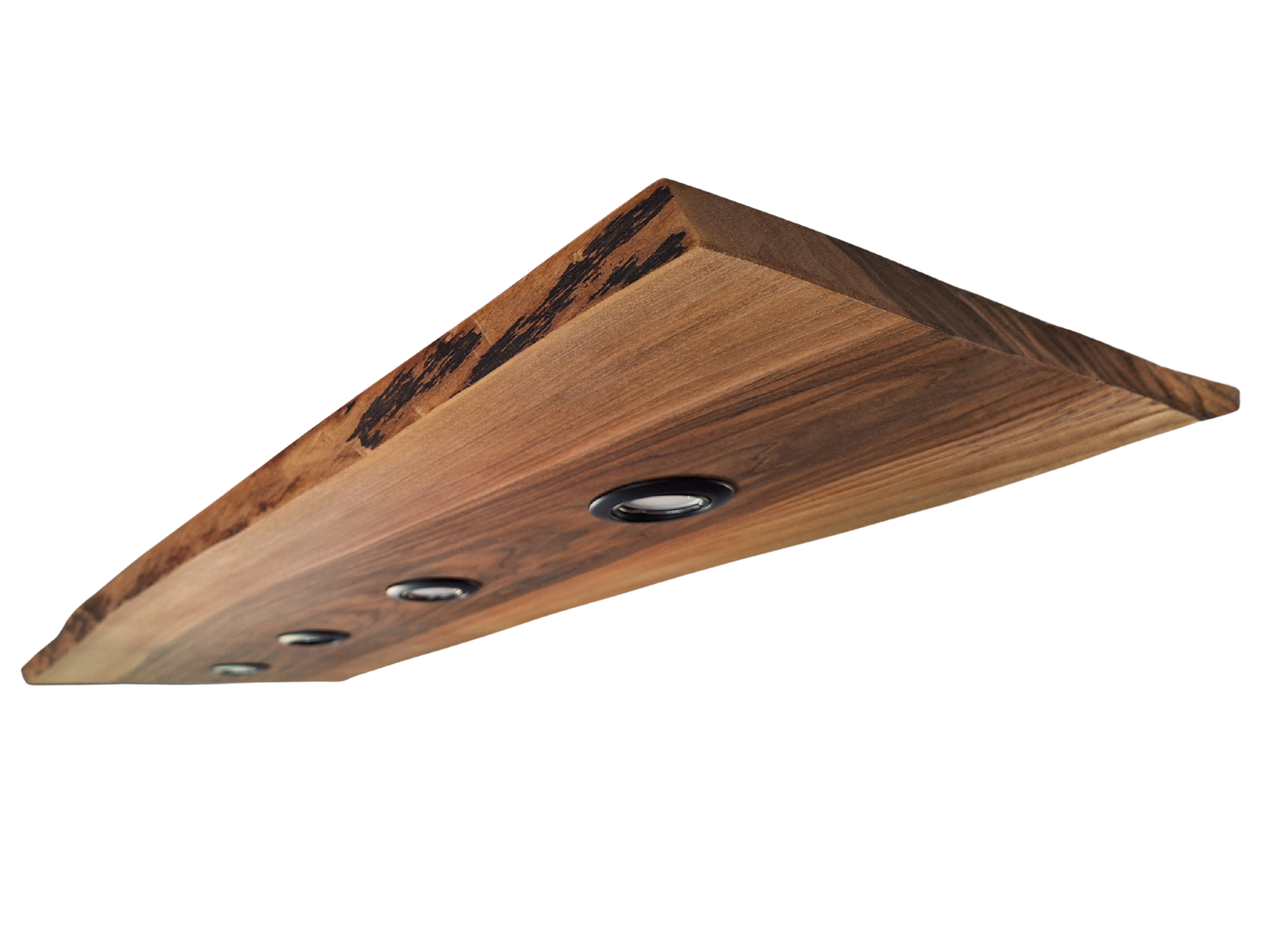 This walnut ceiling lamp brings both direct and ambient light into the room with a floating effect.