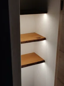Kopalniške police z ambientalno osvetlitvijo ter stropna luč po meri